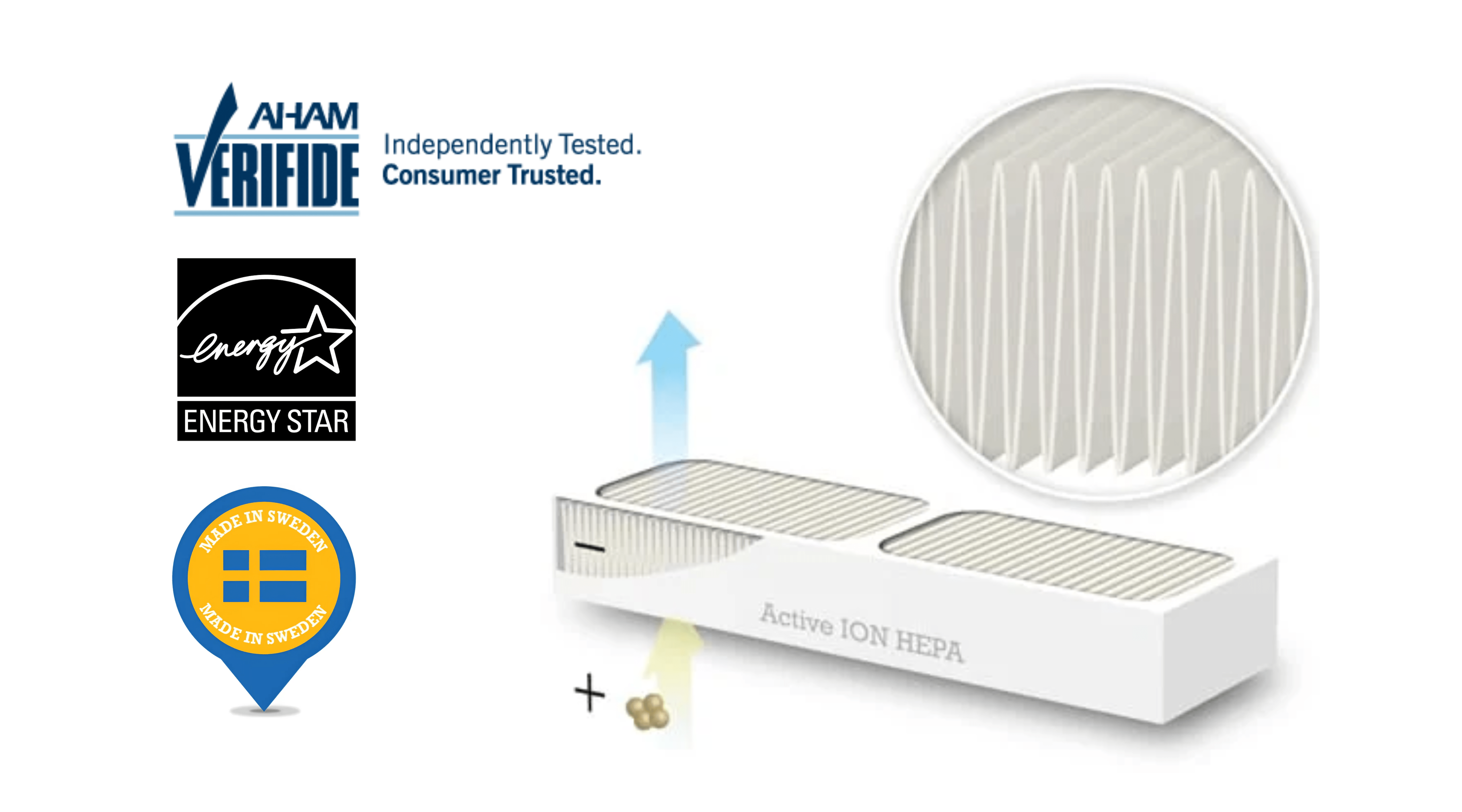 Bộ lọc Active ION HEPA có khả năng loại bỏ 99,98% tất cả các hạt trong không khí trong nhà bạn. Nó giữ lại phấn hoa, bụi, bào tử nấm mốc, vi khuẩn và thậm chí cả các hạt radon phóng xạ. Kết quả là bạn sẽ có bầu không khí trong lành và lành mạnh hơn ngay tức thì, lý tưởng cho người bị dị ứng hoặc bất kỳ ai mong muốn cải thiện chất lượng không khí trong không gian sống.