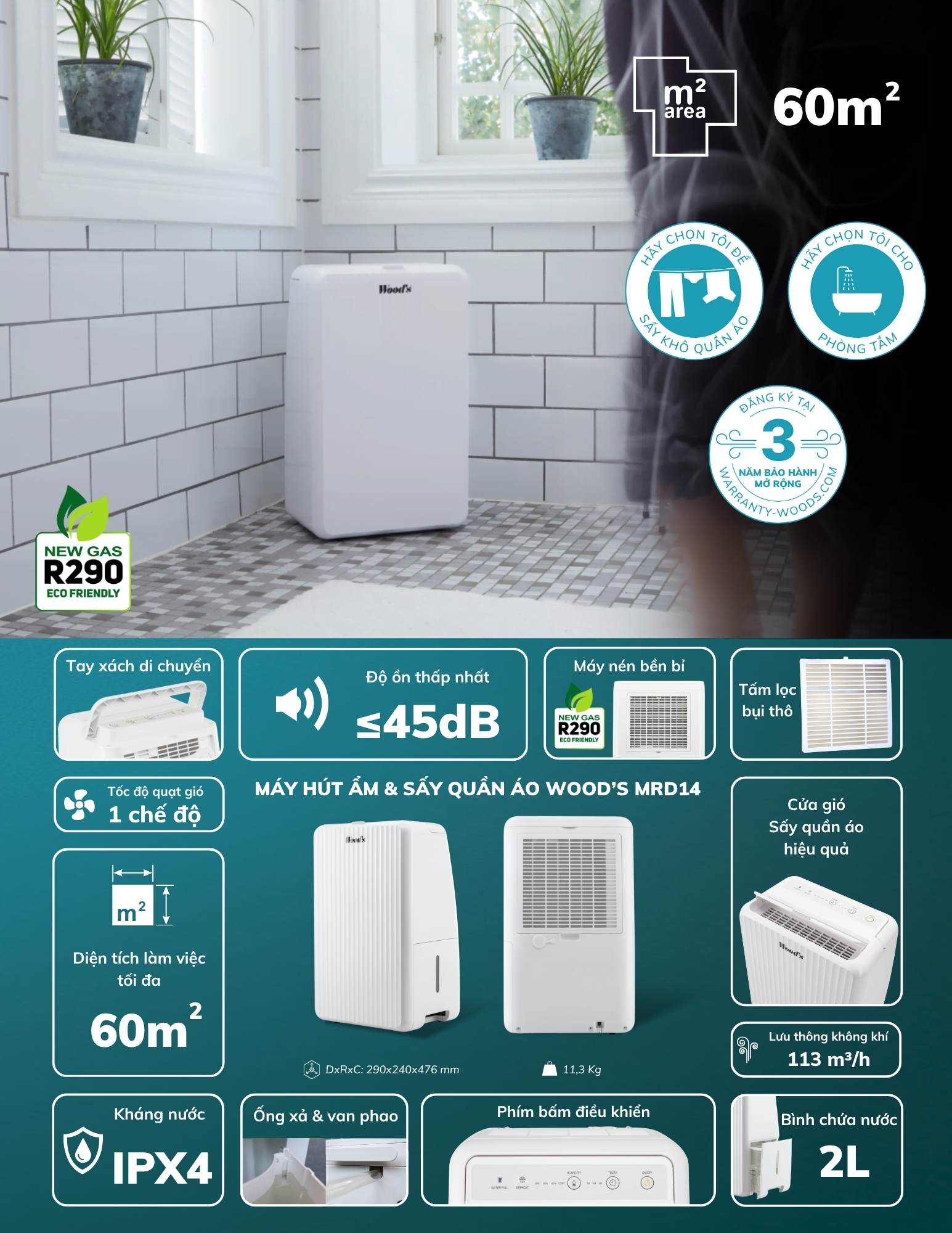Máy hút ẩm và sấy quần áo Wood’s MRD14