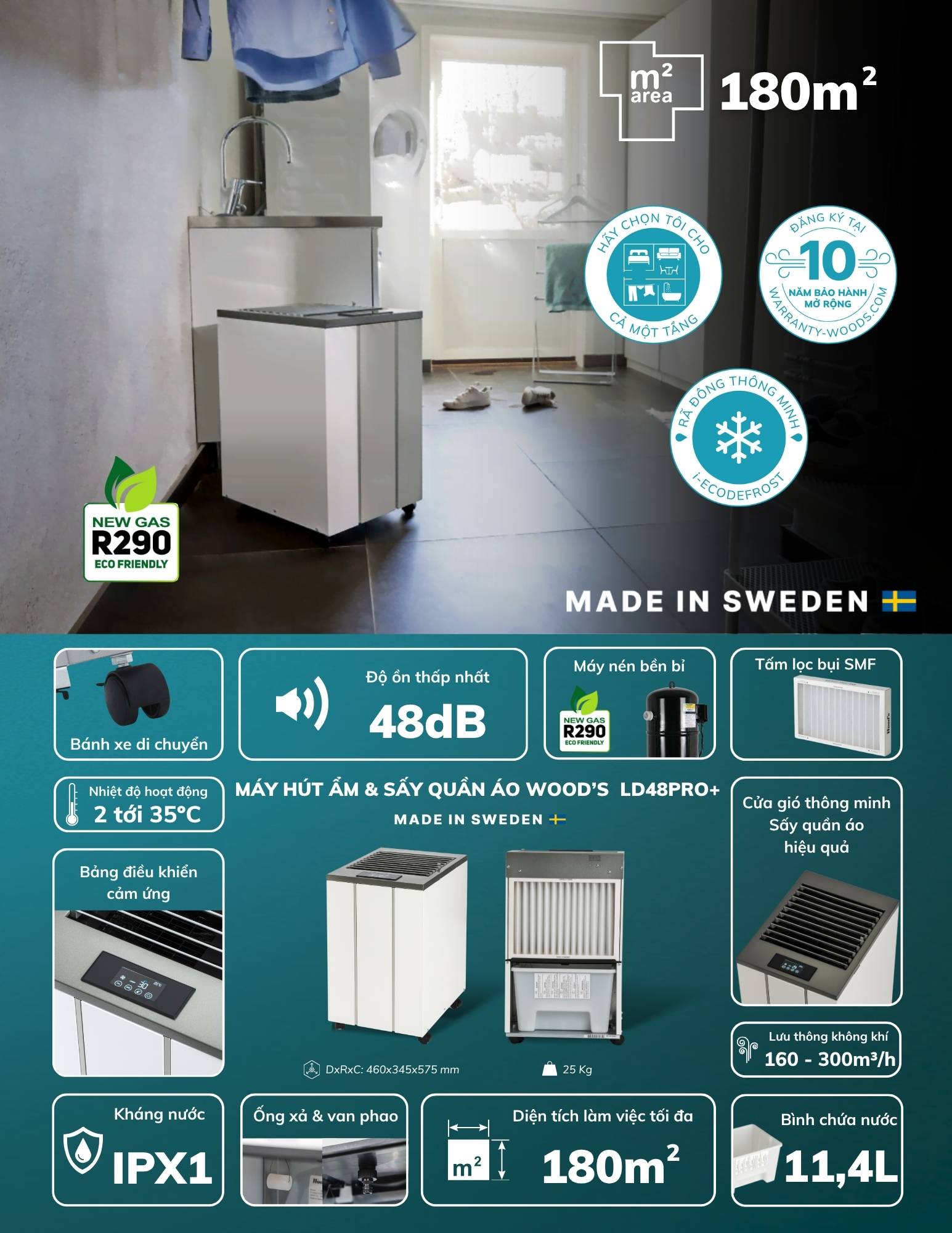 Máy hút ẩm và sấy quần áo Wood’s LD48Pro+